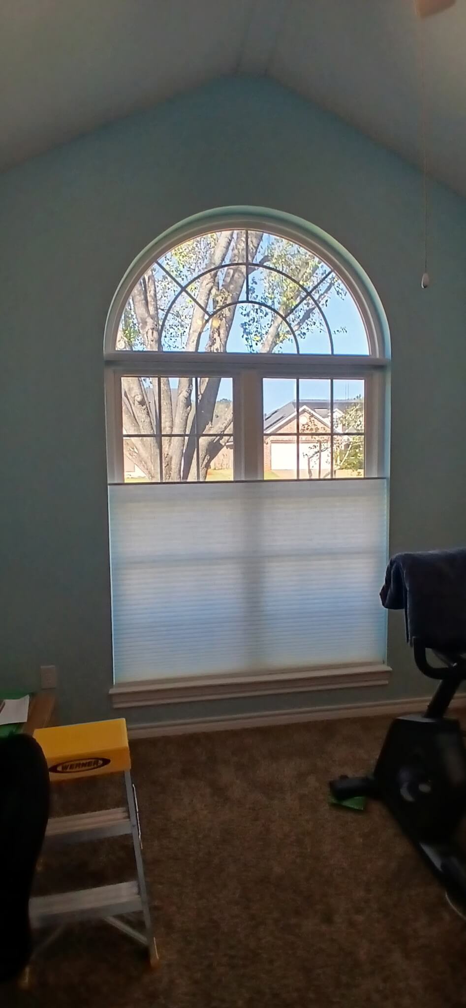 The customer wanted to add a window covering with great heat reduction but would let light in. We put up cellular shades with a top down, bottom up feature so when some view was wanted in Whitehouse, TX, it could be done with ease.